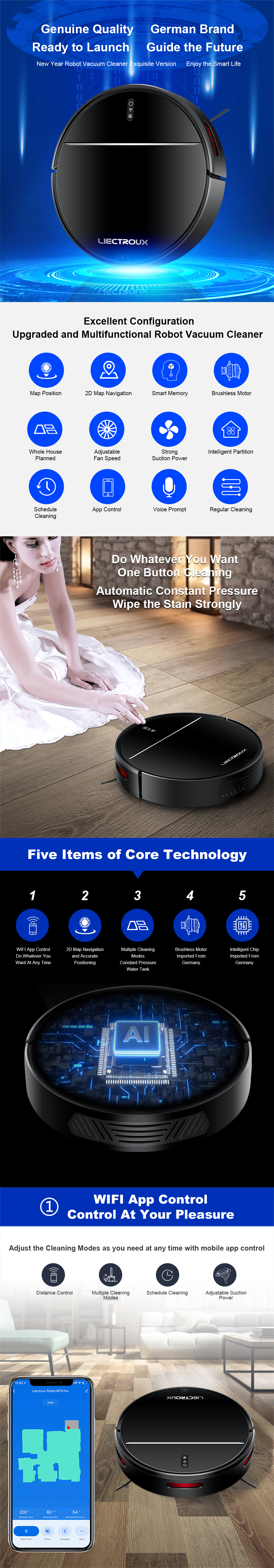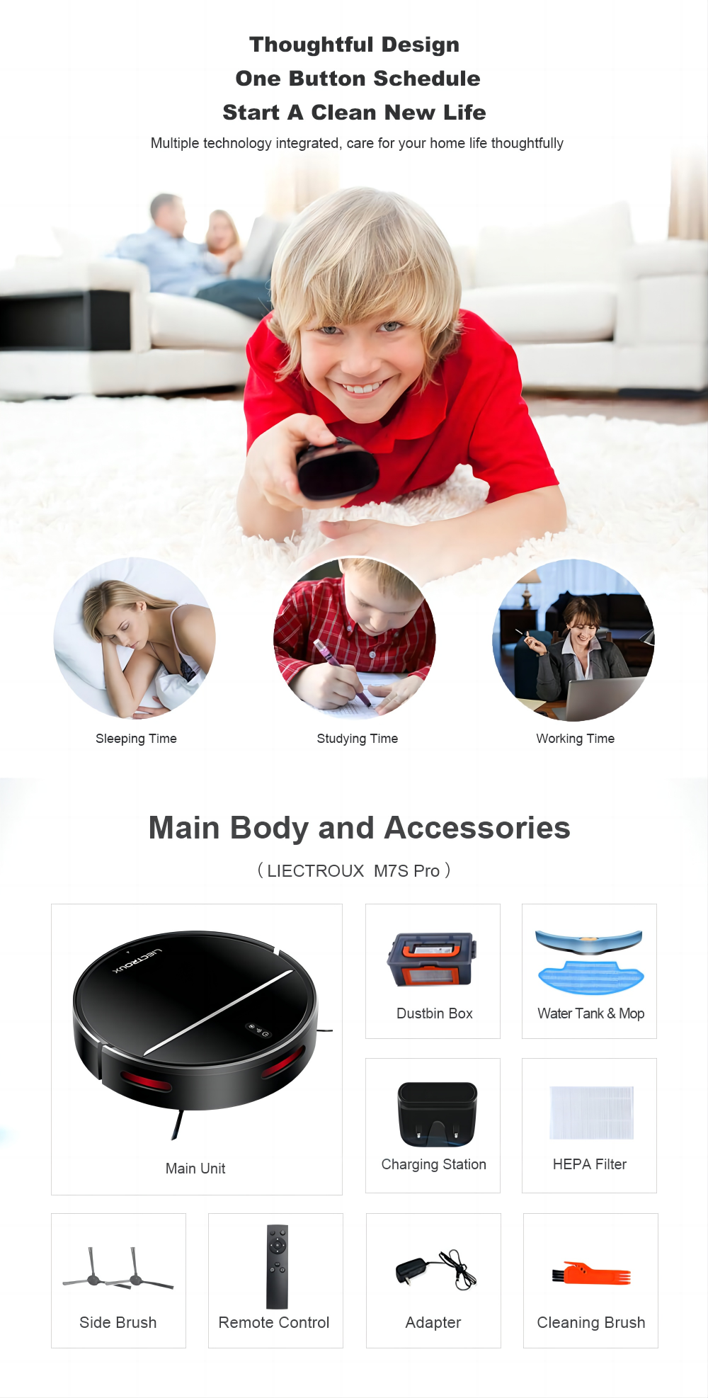 Liectroux M7S PRO Robô aspirador de pó Smart Dynamic Navigation WiFi App Alexa com tanque de água de 200ML Esfregão molhado