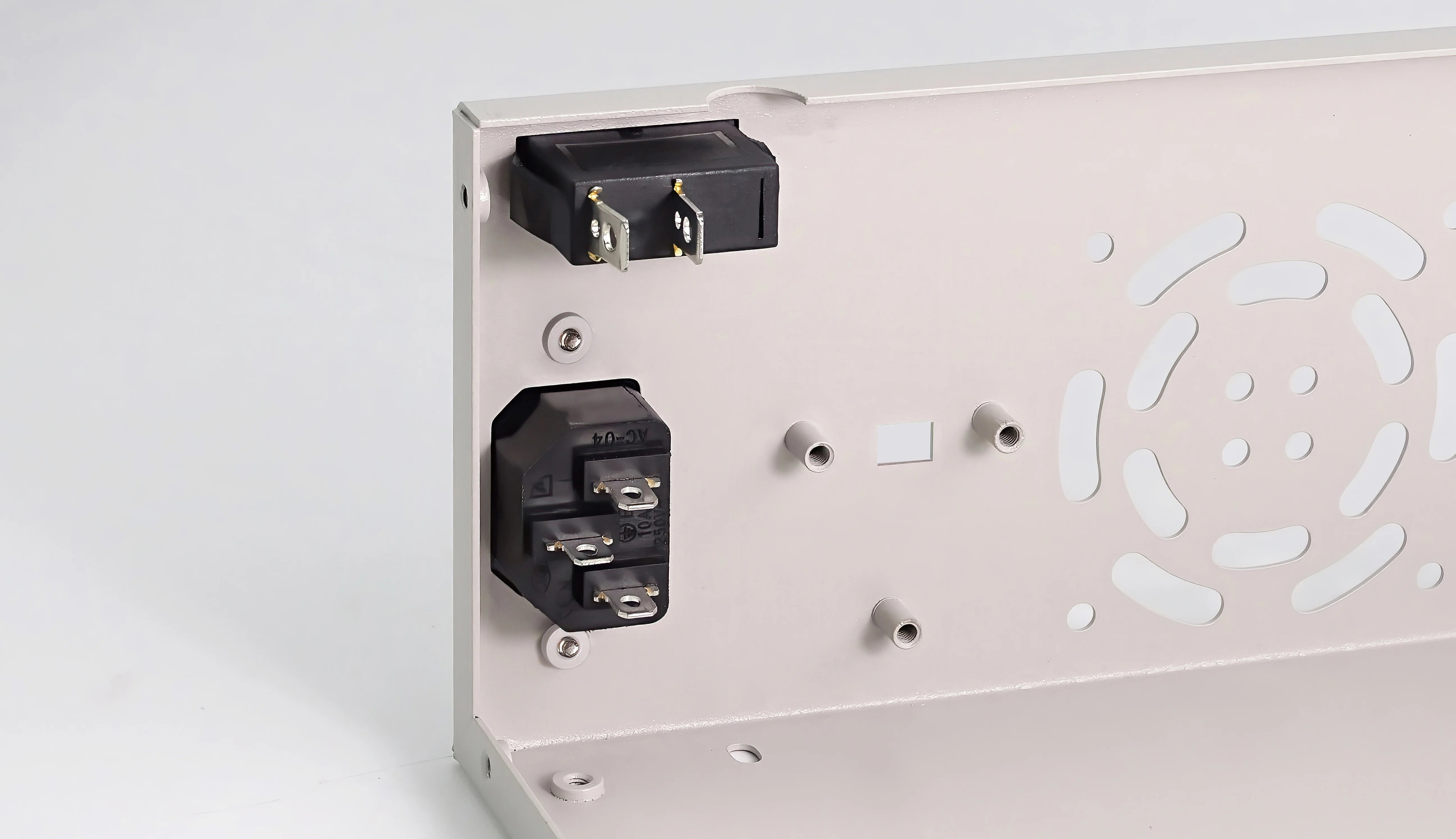③ Back board assembly: install the rocker switch and AC power socket on the lower board.