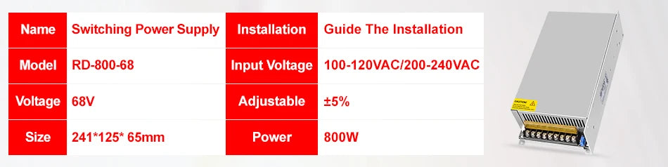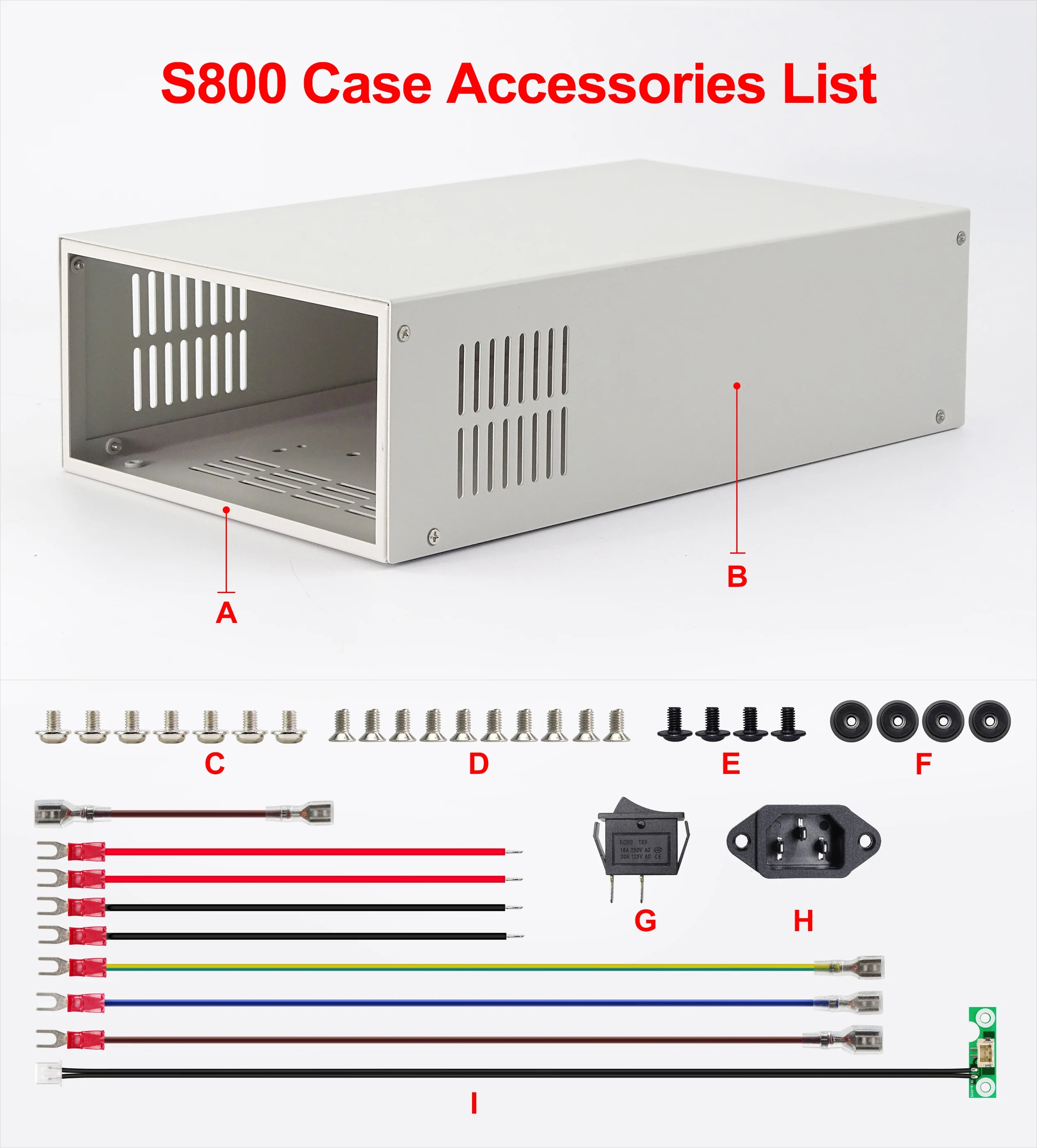 - For S800 case, it is just case, not containing any power supply, it contains the internal cables and screws, it is suitable for RD6012/RD6018/RD6024 and AC-DC 800W/1000W/1200W/1500W switching power supply, you can buy them separately to assemble then together.